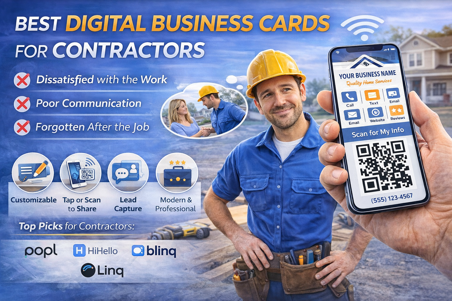 For contractors, the best digital business card is one built for the trades -- not corporate networking. We compared 7 platforms and only one has a built-in quote request form.