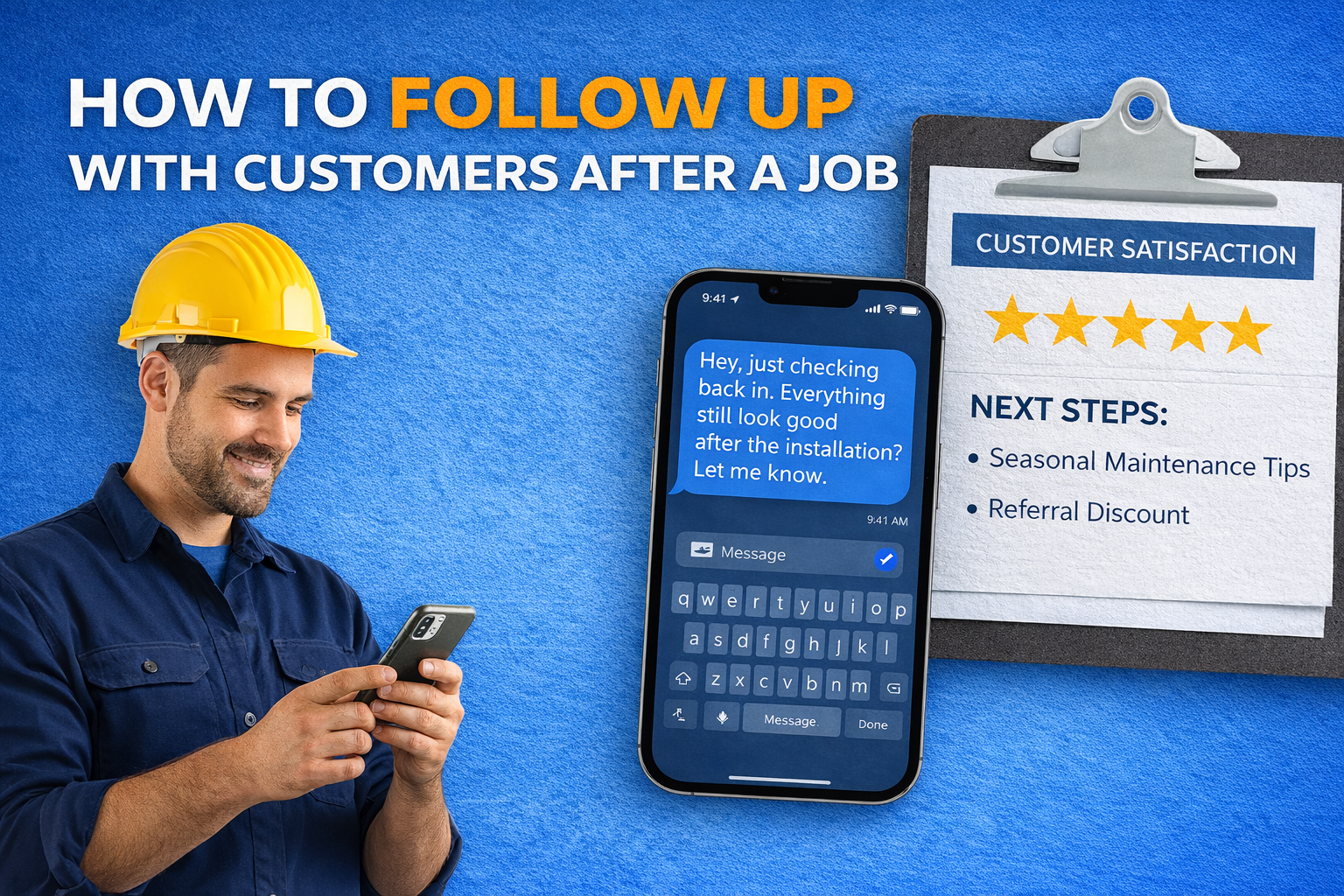 The key is to lead with value, not a sales pitch. Check in on the work you did. Share a useful seasonal tip. Offer something helpful. When your follow-up genuinely serves the customer, it never feels pushy. The contractors who seem desperate are the ones who only reach out when they need something.