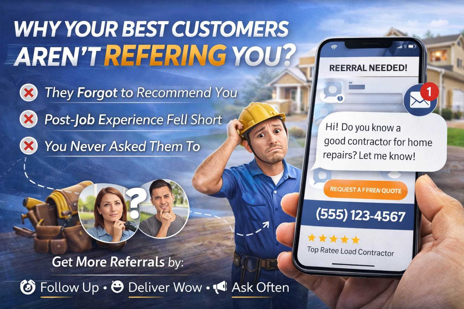 Your happiest customers want to refer you but can't. Learn the 5 hidden reasons contractors lose referrals and the dead-simple fix that turns every job into a lead machine.